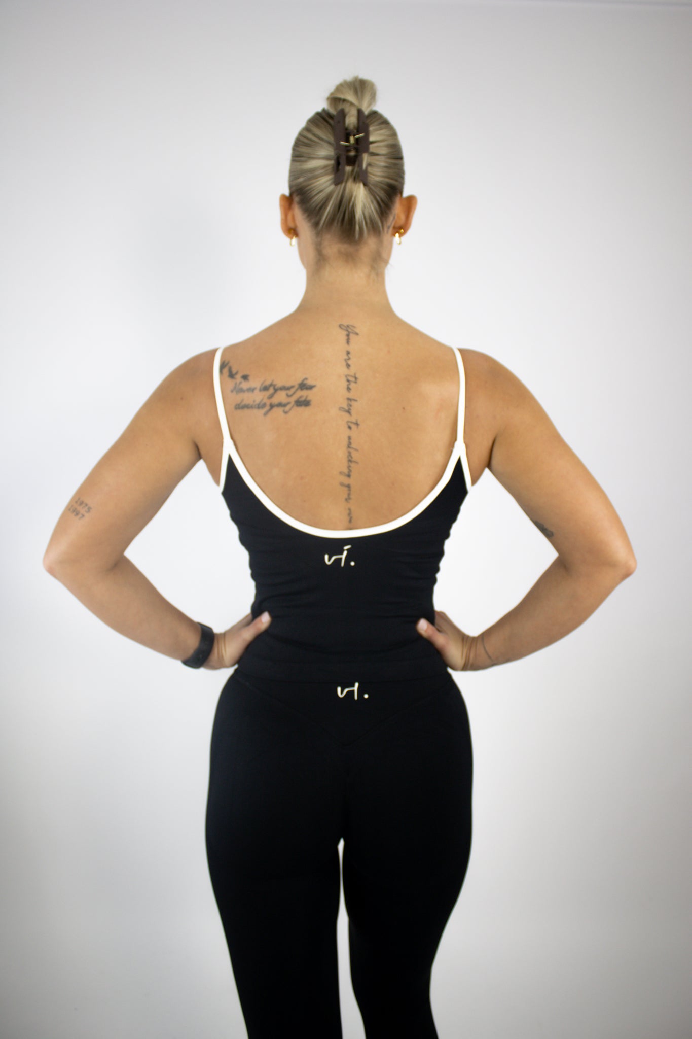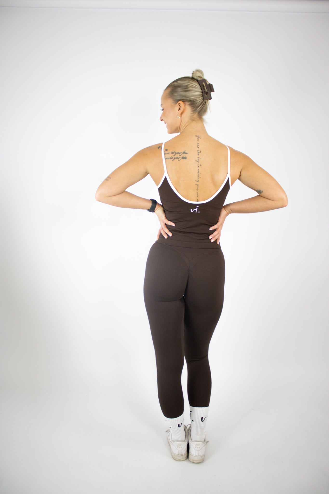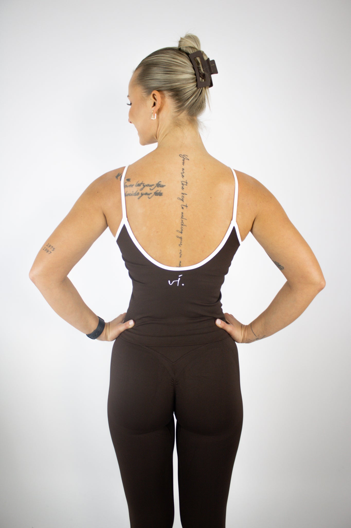 Das vi. Avi.ara Top setzt deine Figur perfekt in Szene: Ein integrierter Support-BH mit herausnehmbaren Padssorgt für sicheren Halt, während die verlängerte Passform deine Silhouette elegant betont. Feine Kontrastnähte und schmale Träger verleihen dem Top einen femininen und zugleich sportlich-eleganten Look, der im Gym genauso überzeugt wie im Alltag.
